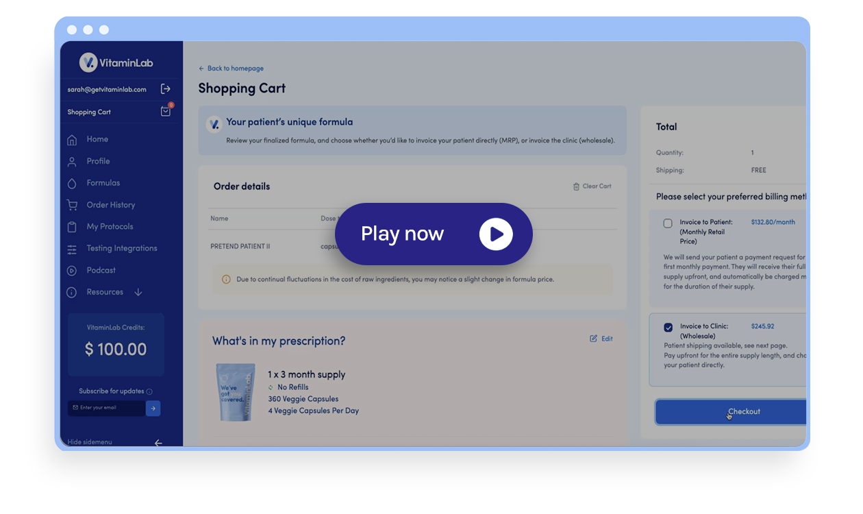 Click the “Modify and Buy” button to be redirected to VitaminLab’s practitioner portal where you can choose from over 200 professional-grade ingredients to add on.